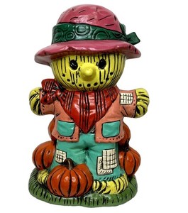 Vogelscheuche Vintage handbemalt signiert Keramik Herbstfarben Erntedankfest 7" SCHÖN!