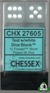 Chessex 16mm 12xd6 "Frosted" Teal/white