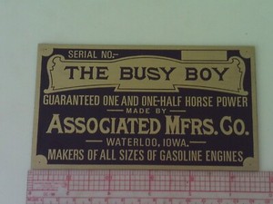 Associated The Busy Boy Engine reproduction Name Plate tag Nameplate