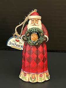 Jim Shore Weihnachtsschmuck Weihnachtsmann mit Ananaskranz mit Box Enesco Welcome