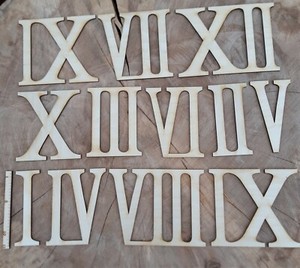 Römische Ziffern aus Holz 1-12 für eine Uhr 50 mm Höhe Basteln Deko