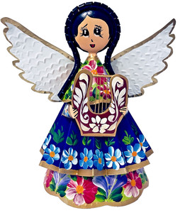 Mexikanischer Engel Dose mit Harfe Christbaumspitze Volkskunst Mädchen