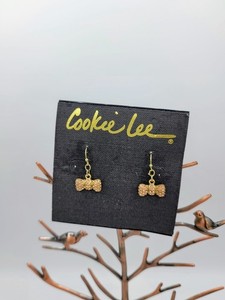 Cookie Lee Schleife Ohrringe goldfarben rosa Kristall baumelnd, neu auf Karte, neu mit Etikett CHF 9,61