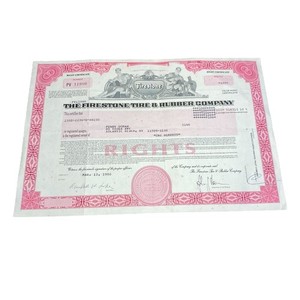 Vintage Firestone Tire & Rubber Company Aktienrechte Zertifikat 100 Aktien 1988