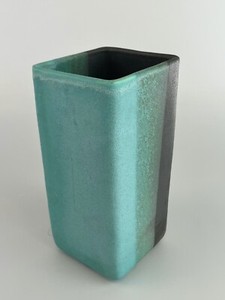 Abstract Artisan Studio Pottery Signed Blue & Black Rectangular MCM Vase