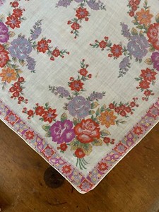 Vintage 1940's Floral Bouquet Printed Cotton Hankie * Handkerchief