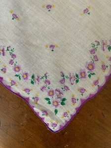 Vintage 40er Jahre zartes lila Stiefmütterchen Rosenmuster Taschentuch * Taschentuch