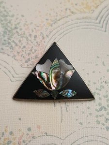 Vintage Brosche geschnitzt Perlmutt 4 cm lang
