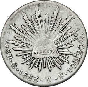 # MEXICO • 1868 ☆ 2 REALES ZACATECAS · SILVER • PROFILE EAGLE ☆ KM#374.12 ☆C9879 CHF 40,150 Gebote2T 1Std 34 Min