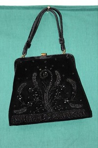 Vintage MCM Souré Tasche New York Perlen schwarz Wolle aufwendig Handtasche
