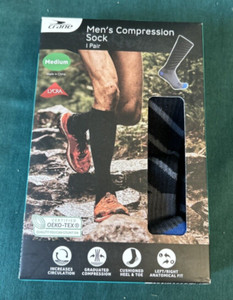 Neu Crane Herren Overknee Kompressionsstrümpfe schwarz/grau/blau Extra Large