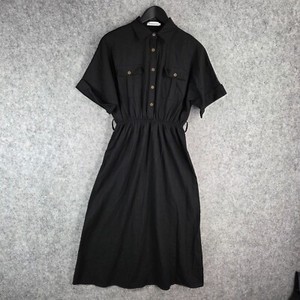 Atmos & Here Dress Womens 8 Black Linen Blend Short Sleeve Collared Maxi 11877