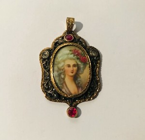 1 ciondolo antico fotoritratto artista dama 800 Oro 14 Kt Rose Diamante, Rubini