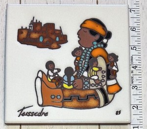 Cleo Teissedre Fliese Indianer Geschichtenerzähler signiert 1985 Geschichtenerzähler Vintage CHF 11,99