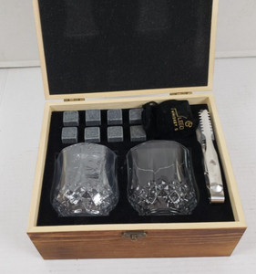 Leebs Whiskey Glass Set with Granite Ice Stones and Tongs
