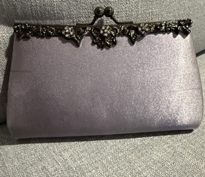 JESSICA McClintock Clutch Abendtasche Clutch mit Schmucksteinen gunmetal grau Kette Schulterriemen