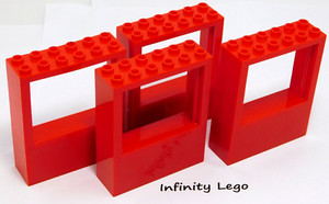 4 LEGO Vintage Red Window Frame 2 x 6 x 6 Freestyle (6236) - 4 Pieces