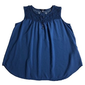 Chaps Denim Top Damen L blau Viskose ärmellos Häkelausschnitt Boho Coastal Preppy