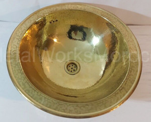 16 Zoll Runde Unlackierte Messing Badspüle, Handarbeit Massiv Messing Gold Spüle Waschtisch