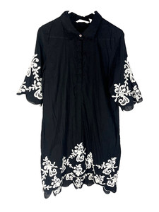 SOFT ENVIRONMENT Kleid Größe Large schwarz Blumen bestickt Baumwolle halbtransparent