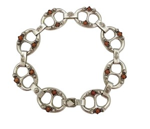 Sterling Silber Koralle Cabochon Etrusker Armband ovale Glieder