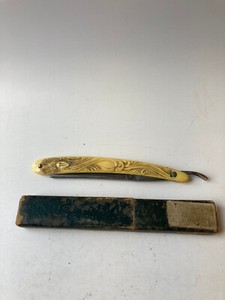 Antik gerader Rasierschüssel Keilabsatz gelber Griff Jugendstil