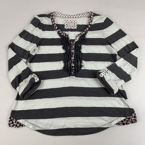 Talbots Pullover Oberteil Damen Medium weiß marine Print 3/4 Arm Henley Stretch