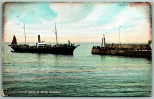 SS St. Clair Einfahrt Wick Hafen Schottland Caithness 1907 DB Postkarte J10