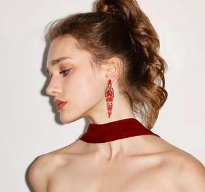 Long Red Dangle Drop Rhinestone Earrings Prom Wedding Pageant Holiday Party