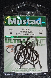 10er-Pack Mustad Ultra Point 10829NP-BN-30 Big Gun 2x Live Köder Haken - Größe 3/0