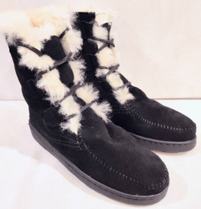 MINNETONIKA JUNIPER SCHWARZ WILDLEDER SCHEREN SCHNÜRSTIEFEL NOOB GRÖSSE 6