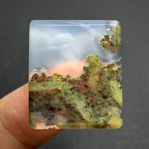 Tiny Scenic Moss Agate Cabochon 17x12x4mm High Quality 7.5 ct