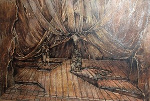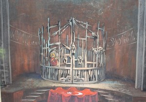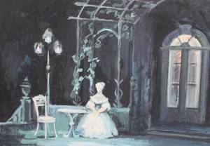Gouache Gemälde Theater Bühnenbild Innenszene