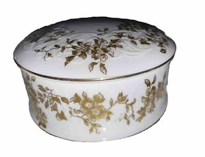 Crown Staffordshire Aristocrat Bone China Gold Vintage Discontinued Round Box Rare