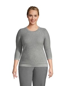Lands End Damenpullover 3/4-Ärmel Größe 2XL grau Baumwolle Modal strukturiert neu mit Etikett