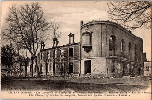 Vintage 1. Weltkrieg bombardiert St-Charles Hospital Kapelle Amiens Frankreich Postkarte