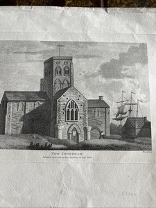 Antiker Druck von 1801; St Mary de Haura Kirche, New Shoreham, Sussex nach Nixon