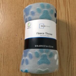Neu Mainstays Doggie Paws 🐶 Druck blau grau weiß Fleece Überwurf Größe 50”x60”