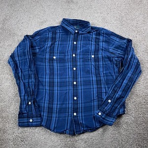 Ralph Lauren Hemd Herren Large blau kariert Leinen Seidenmischung Knopfleiste Arbeitshemd
