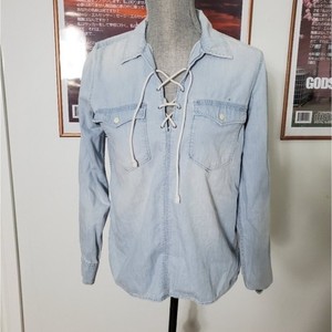 Madewell Distressed Light Wash Denim Schnürhemd Damen Größe S