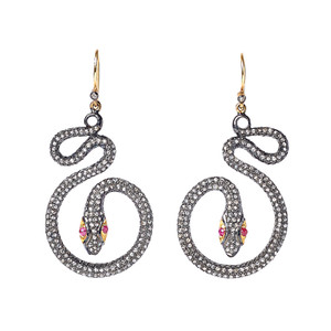 Diamant Pflasterstein 14K Gold Schlange Design Geschenk Hängel Ohrringe 925 Silber Feinschmuck