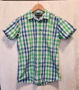 Tommy Hilfiger Hemd mit Knopfleiste Jugend Jungen XL Kurzarm blau/grün kariert
