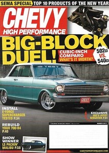 CHEVY HIGH PERFORMANCE 2011 MAR - 502ci vs 540ci, E-FORCE SUPERCHARGER, 700-R4