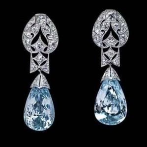 Vintage Art Deco 1940's Pear Shaped Aquamarine & Round Cut OLD Mine CZ Earring