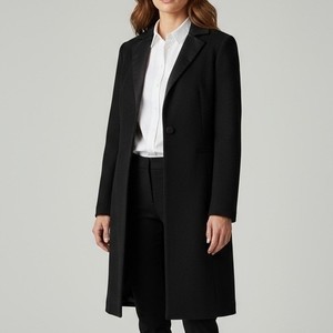 Grace schwarzer Mantel mit langem Revers Damen glitzernd tailliert und Satinkragen Größe 4