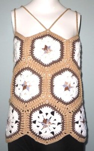 New Handmade Crochet Size XL (38 In) Brown African Flower Hexagon Blouse Tops CHF 10,560 Gebote3T 20Std 12 Min