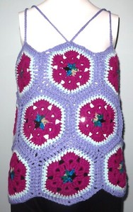 New Handmade Crochet Size L (36 Inches) Purple African Flower Hexagon Blouse Top CHF 10,560 Gebote3T 20Std 12 Min