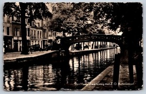 AK RPPC Echtfoto Den Haager Kanäle und Fußgängerbrücke 50er Jahre