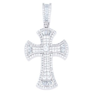925 Sterling Silber Herren Baguette RND CZ Nugget Kreuz Charm Anhänger