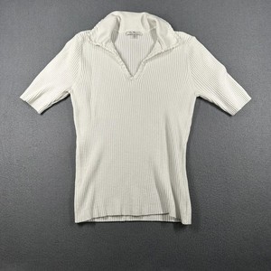 Vila Milano Pullover Damen klein weiß Rippstrick Kurzarm Kragen V-Ausschnitt